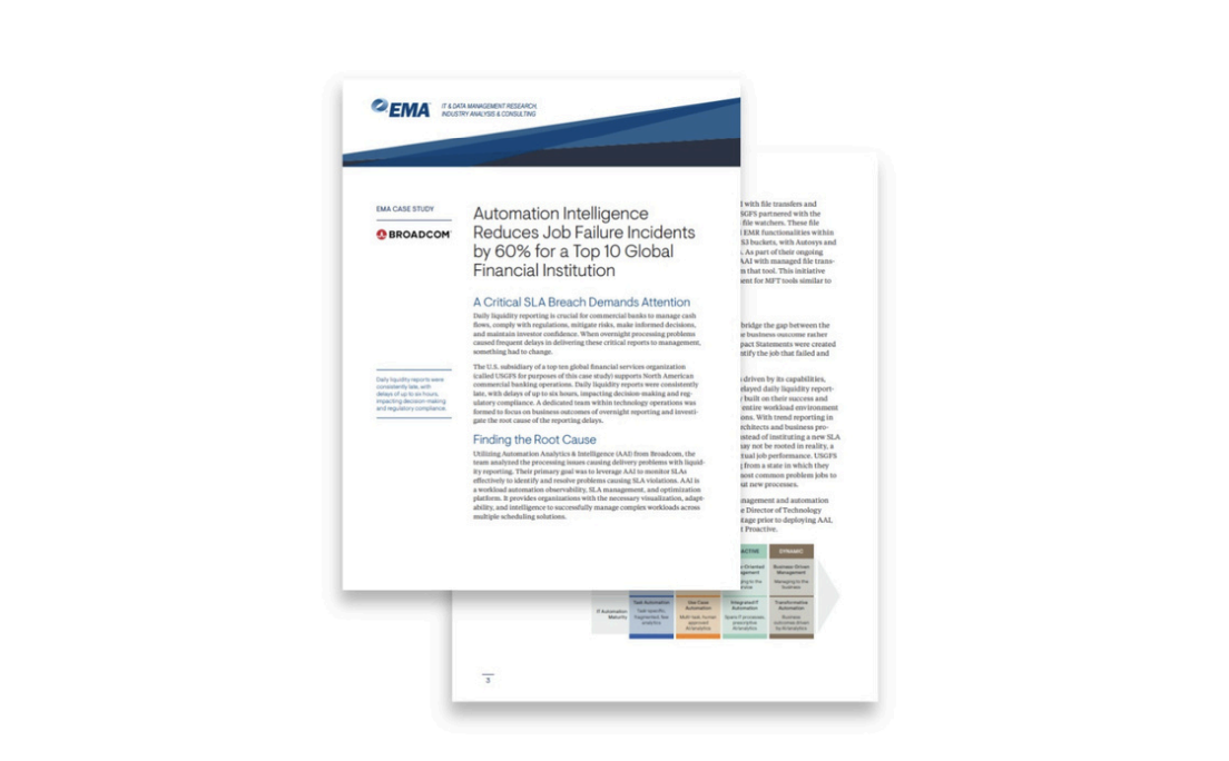 Discover how a global financial services organization used Broadcom’s observability solution, Automation Analytics & Intelligence, to gain visibility across schedulers and improve SLA compliance!