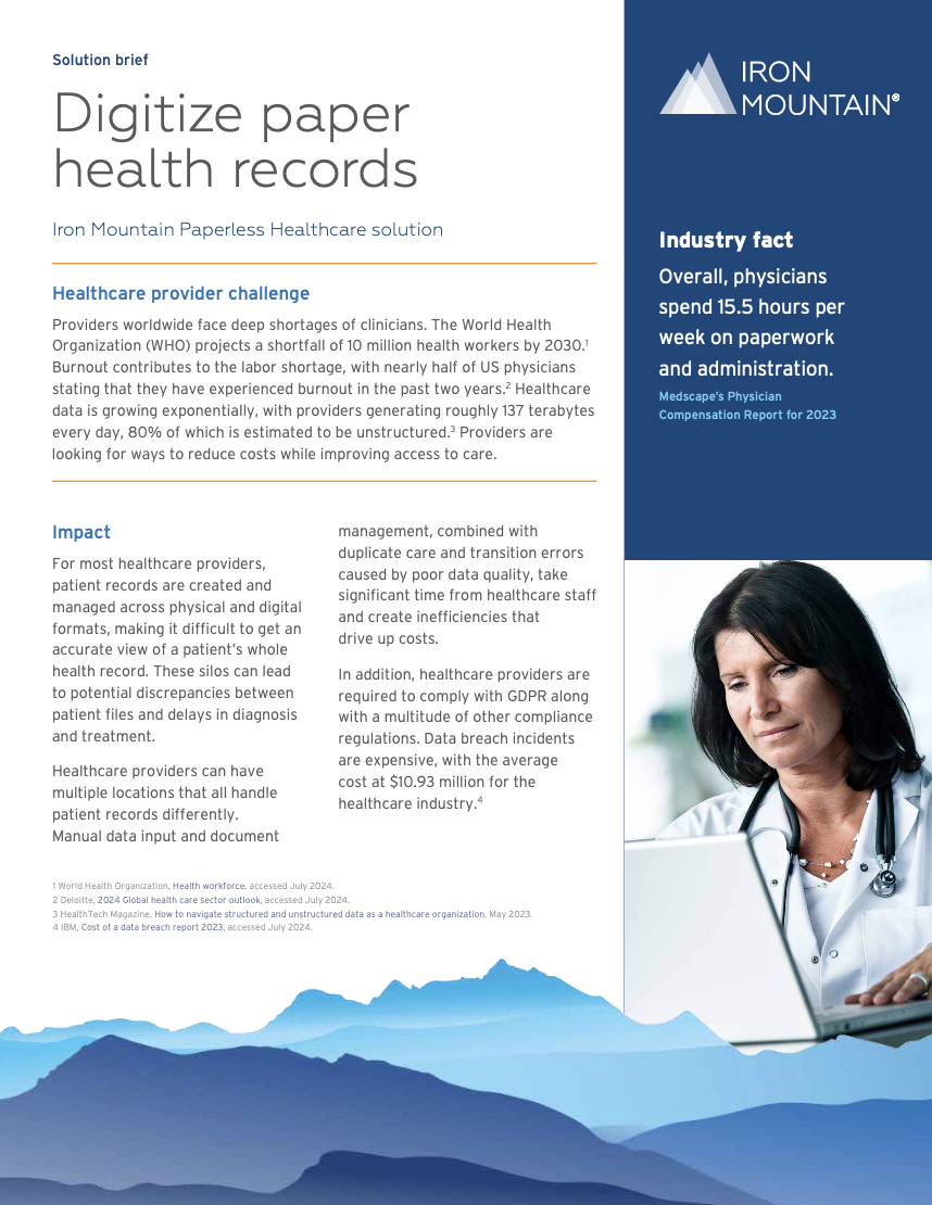 For most healthcare providers, patient records are created and managed across physical and digital formats, making it difficult to get an accurate view of a patient’s whole health record. These silos can lead to potential discrepancies between patient files and delays in diagnosis and treatment.