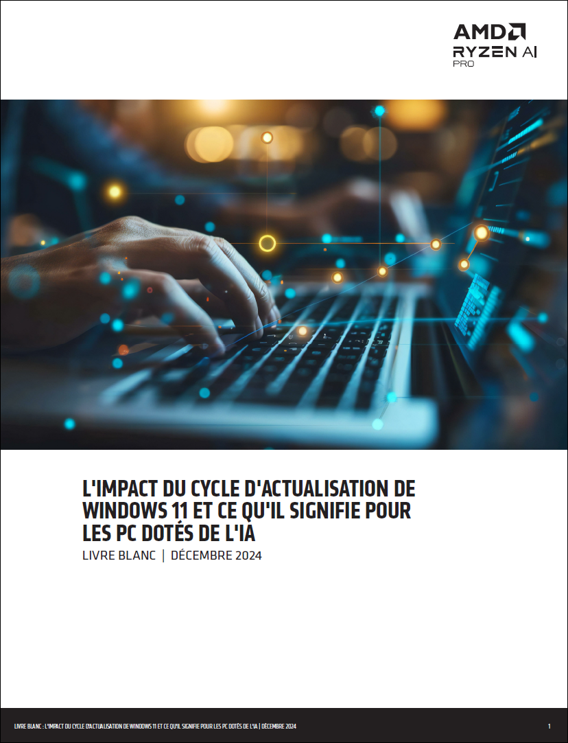 Ce livre blanc explore la façon dont les PC AI peuvent optimiser les objectifs d’IA à court et à long terme, en fournissant une feuille de route pour protéger l’avenir de l’infrastructure informatique de votre entreprise. Téléchargez-le dès maintenant pour en savoir plus sur la façon dont les processeurs AMD Ryzen™ AI PRO aident à débloquer de nouvelles efficacités avec des solutions axées sur l’IA.
