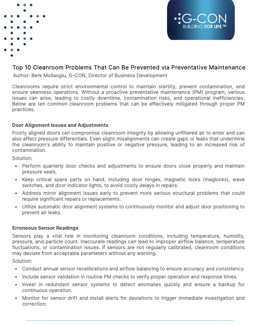 Top 10 Cleanroom Problems That Can Be Prevented via Preventative Maintenance (May 2025)