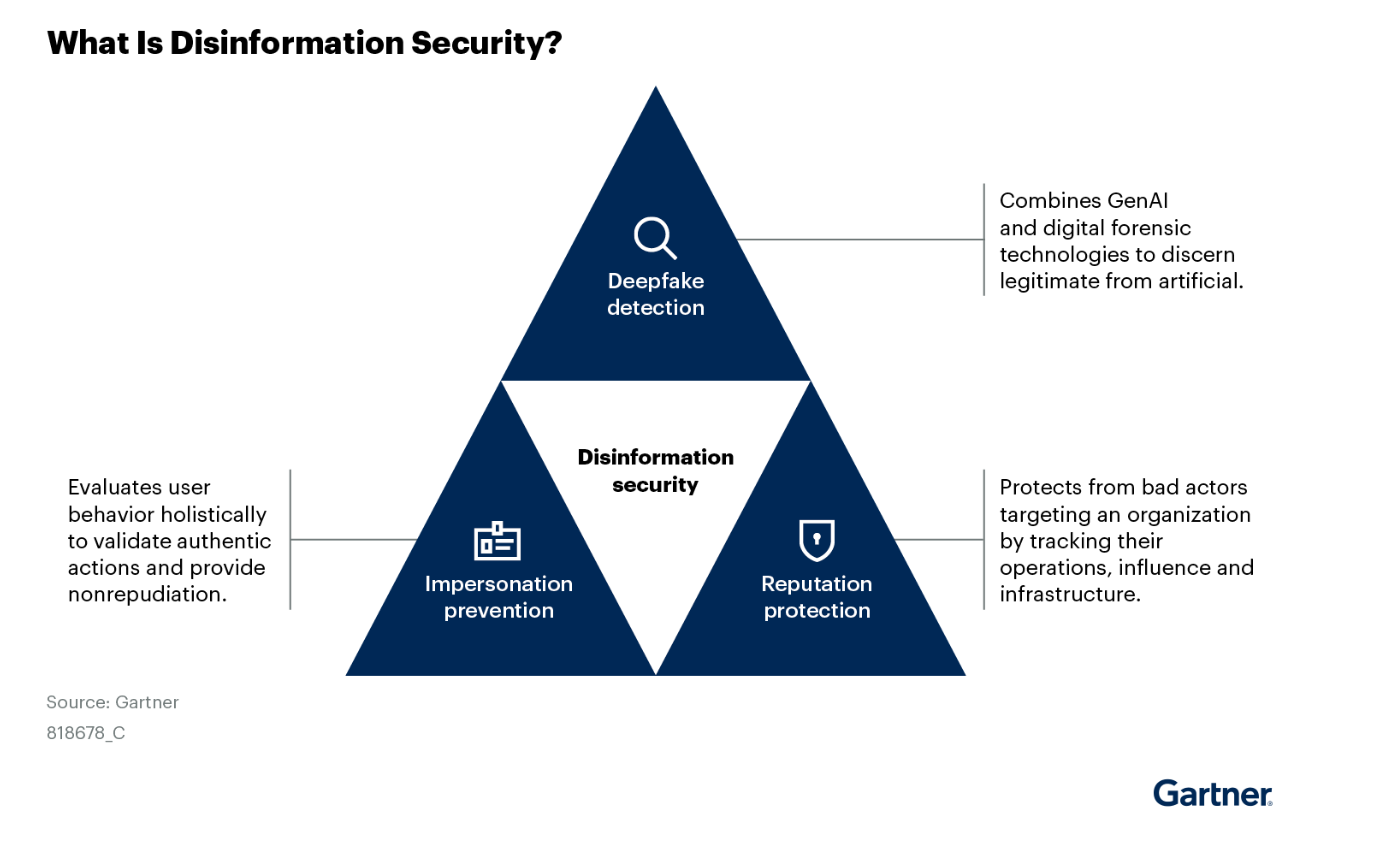 Mit der Verbreitung Kl-gestützter Desinformationen müssen sich Unternehmen zur Bekämpfung aufkommender Bedrohungen und Gewährleistung von Vertrauen weiterentwickeln. Der Gartner-Bericht Top Strategic Technology Trends for 2025: Disinformation Security (Die wichtigsten strategischen Technologietrends für 2025: Schutz vor Desinformationen) untersucht die neuesten Strategien und Technologien zur Erkennung, Reduzierung und Verhinderung von Desinformationsangriffen in einem neuen Zeitalter von Deepfakes, Kl-generierten Fehlinformationen und Social Engineering.