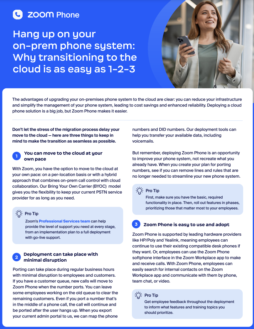 Is your on-premises phone system clunky, outdated, and difficult to manage? If your worries about costs, outages, and ongoing maintenance have you wondering what else is out there, consult our checklist to see if a move to cloud-based phone communications makes sense for your organization. See how you could benefit from cost savings, increased reliability, and a more modern, resilient communications strategy.