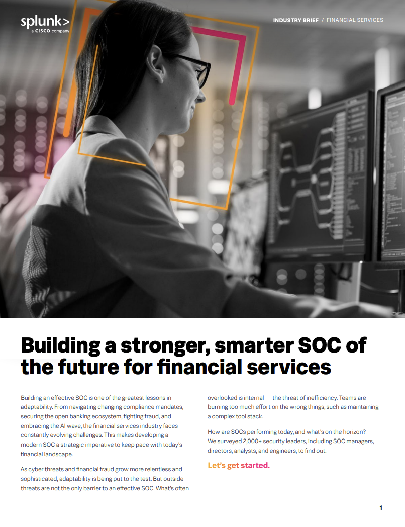 Download this State of Security action guide for financial services for insights and steps to transform the SOC from overwhelmed to optimized.