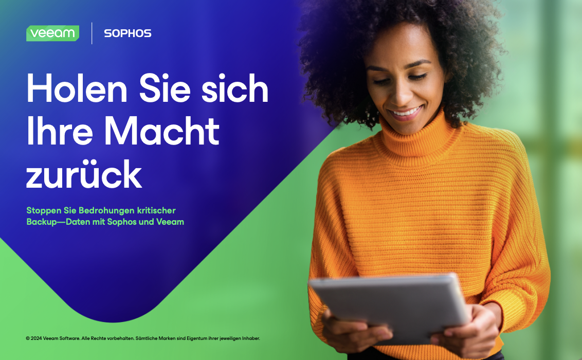 Sophos und Veeam unterstützen Sie dabei, auch bei zunehmenden Bedrohungen weiterhin Sicherheit und umfassende Resilienz zu gewährleisten.